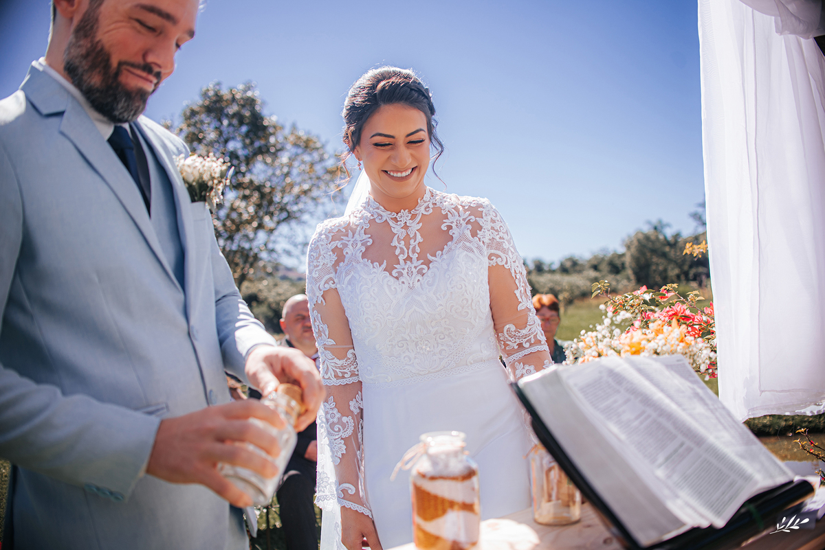 Que dia abençoado! Depois de tantos dias cinzentos e chuvosos, o sábado do casamento da Andreza e do Tiago se fez lindamente ensolarado, sem uma nuvenzinha no céu. Ahh esses noivos liiindos estavam transbordando de felicidade, um amor que não cabia no peito, que iluminava a cada troca de olhares, de palavras, com as lindas palavras do pastor, com o abraço sincero de cada um que celebrou essa dádiva com eles. O arrepio vem só de lembrar de todas as emoções que vivemos com eles, num casamento bem íntimo, tivemos a maior honra de sermos escolhidas para capturar toda essência e grandiosidade desse belissímo amor!