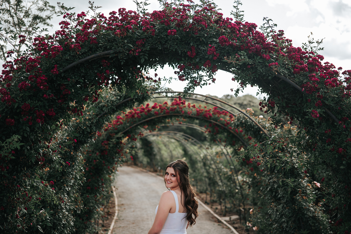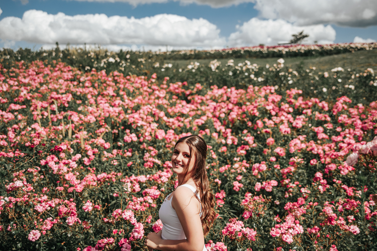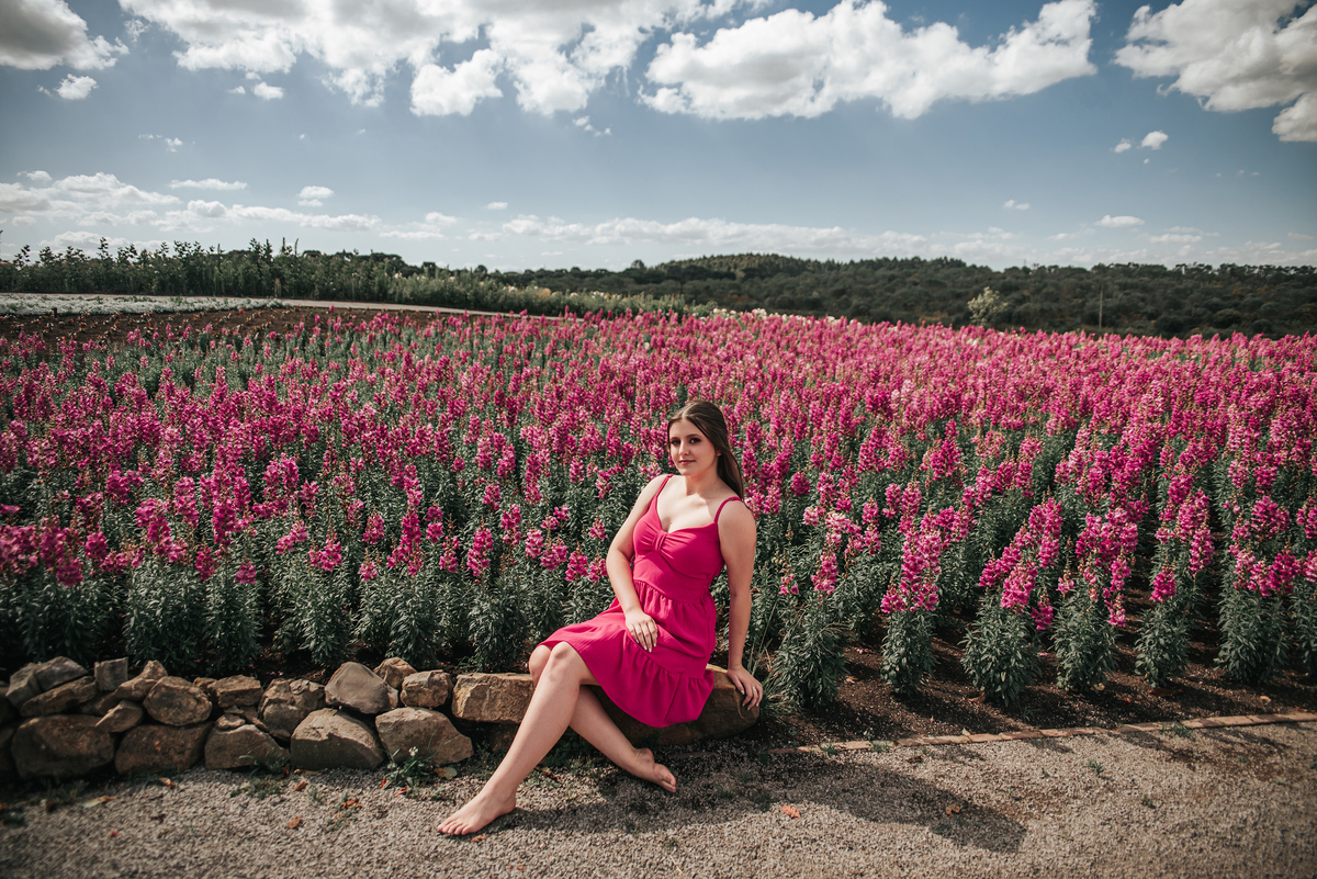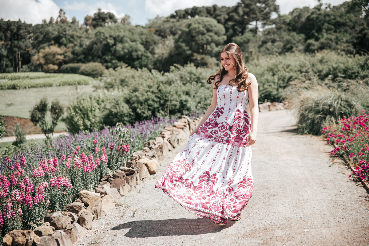 O cenário para retratar os 15 anos da Sofia foi uma escolha poética: flores e juventude!
