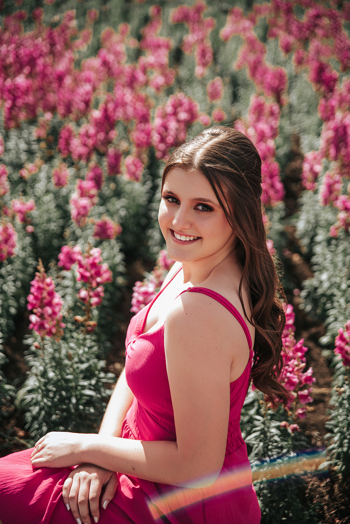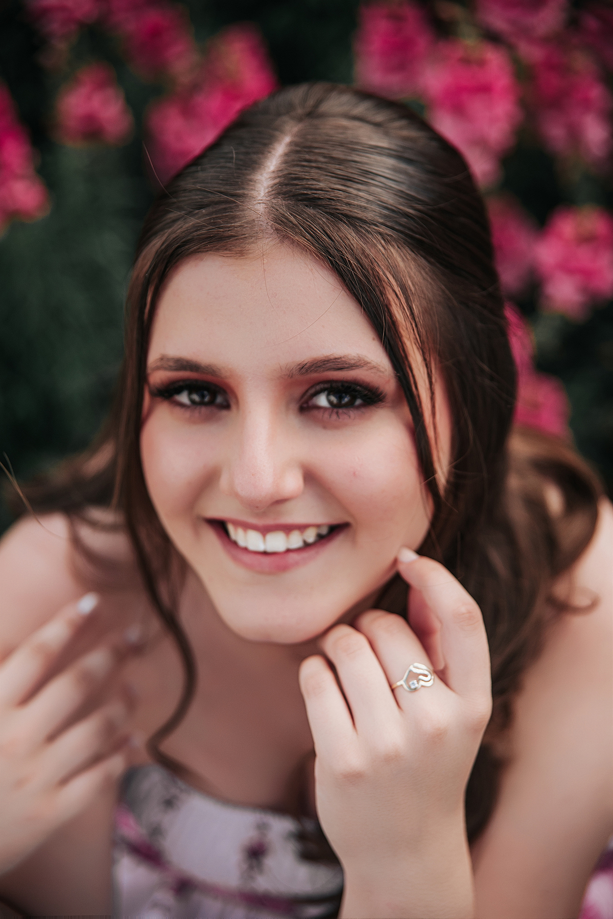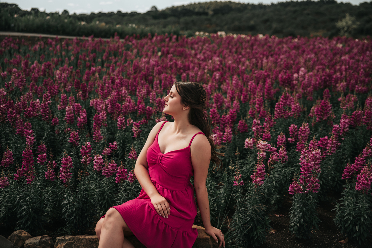 O cenário para retratar os 15 anos da Sofia foi uma escolha poética: flores e juventude!