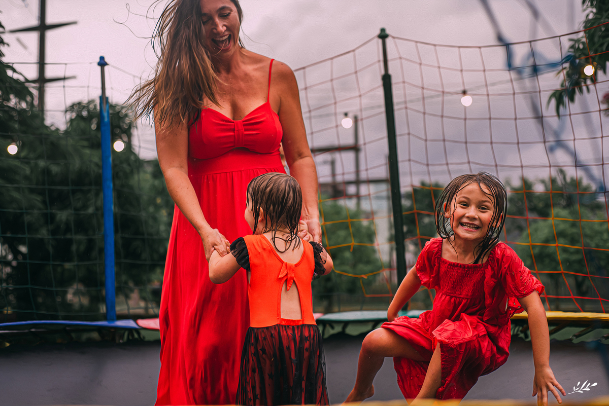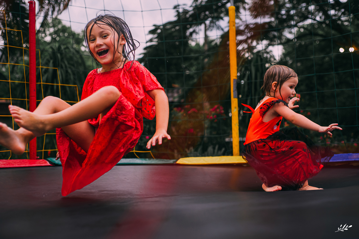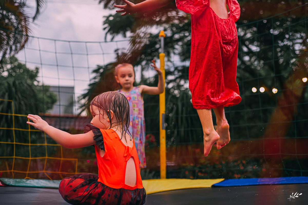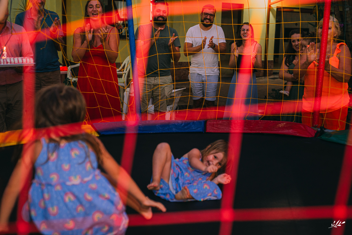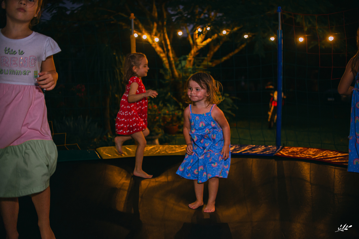 Ahh essa família amada, celebrando a vida sempre do jeintinho deles, com todo amor por suas meninas. Ao lado da família e dindos, ela curtiu cada segundo. Um pula-pula na chuva deu início a noite dela que tinha seu doce olhar iluminado de felicidade, pula-pula que foi o palco do parabéns mais encantador da história! Foi lindo demais!