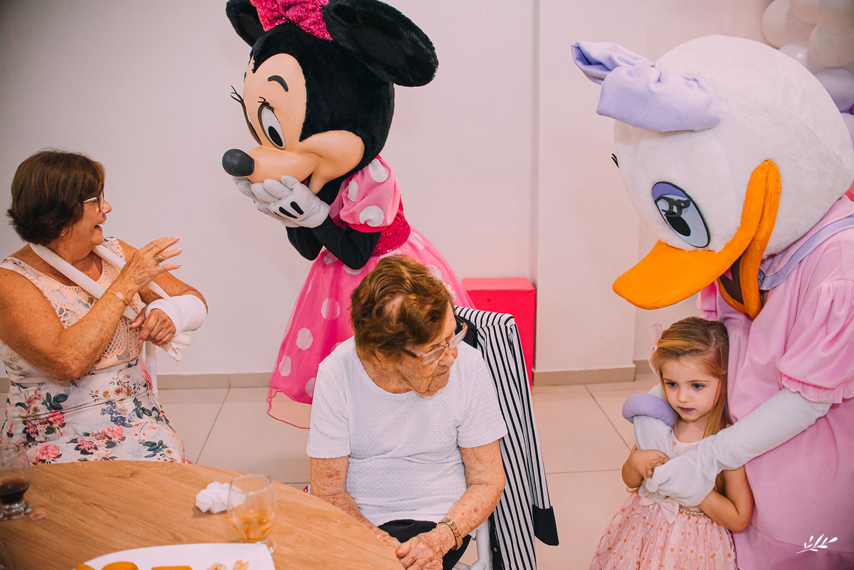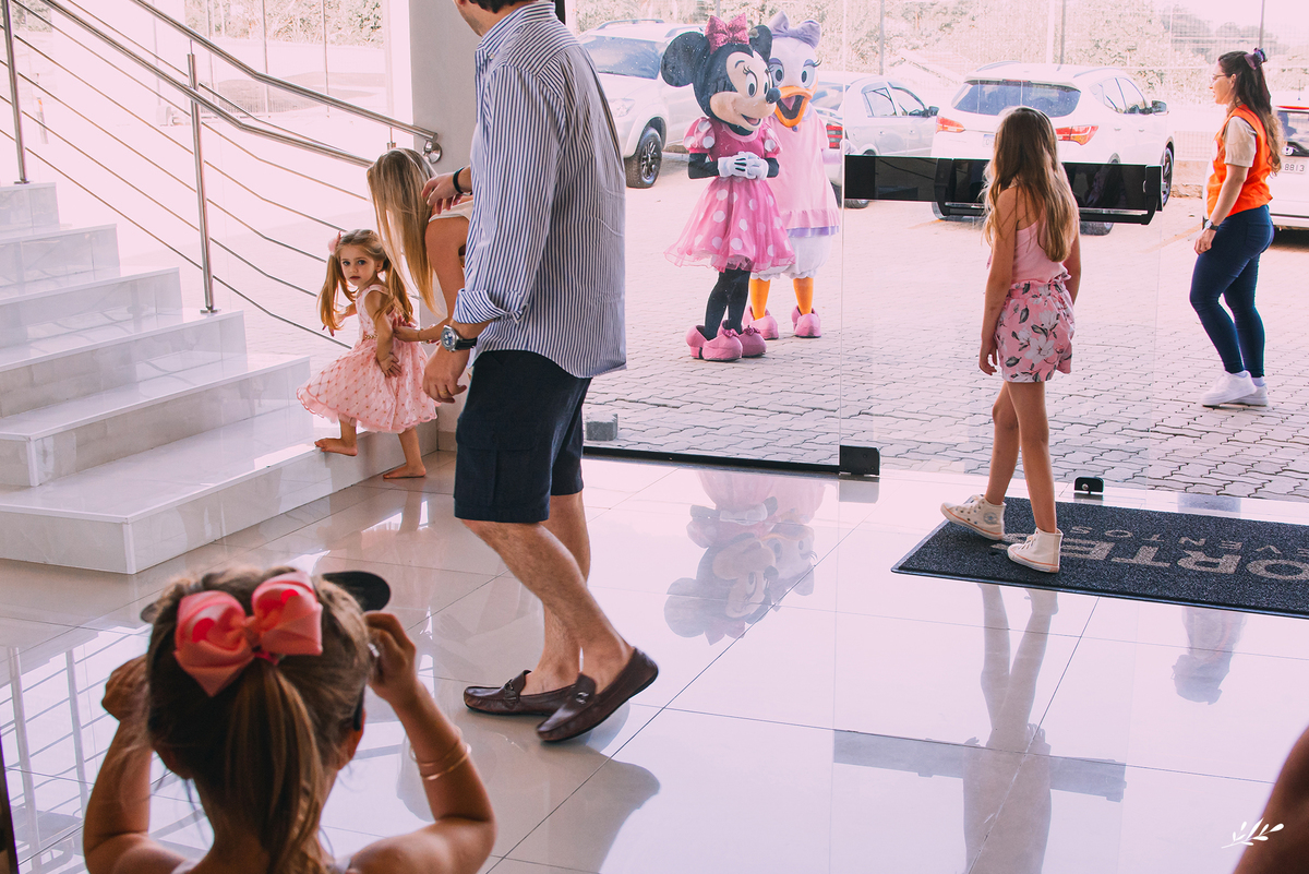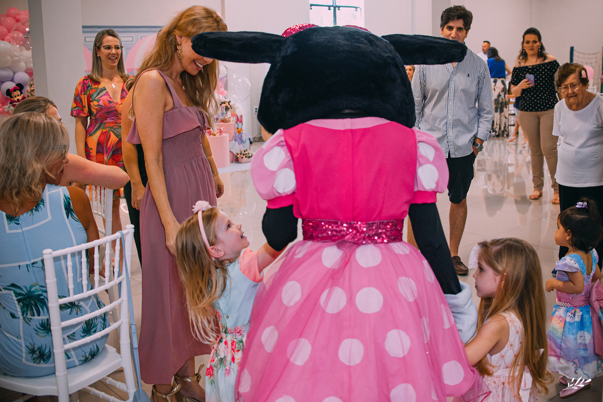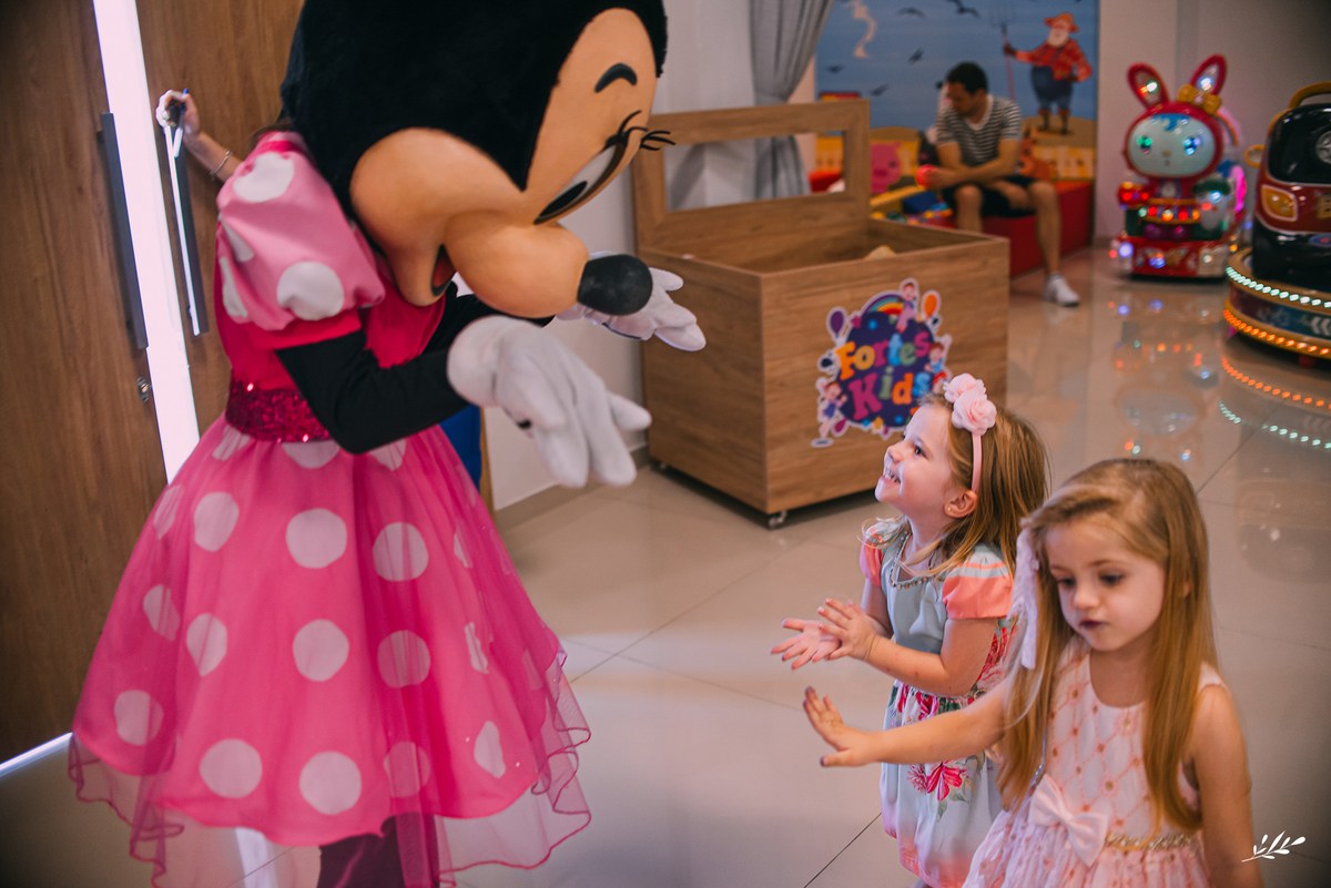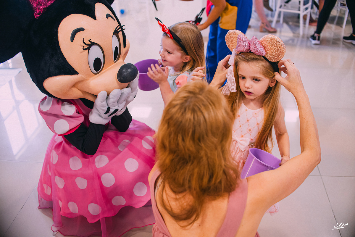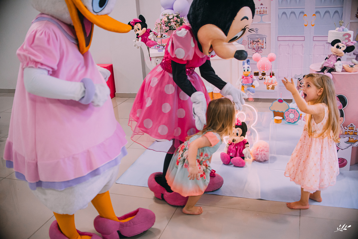 Geeente, a Clara parece que saiu de um conto de fadas, toda delicada e liiinda de viver. O aniversário foi organizado com todo amor por seus pais queridos pra comemorar com a família e os amigos daqui. E a Clarinha estava realizada, seus olhinhos brilhavam, seu corpinho pulava de alegria com a companhia da Minnie e da 'Pata' (Margarida); surpresa preparada com tanto carinho para ela. E ela curtiu cada segundo, explorando esse local tão divertido, brincando sem parar com os amiguinhos que deixaram seu dia ainda mais feliz.