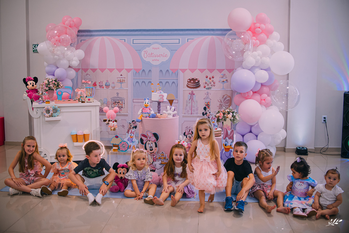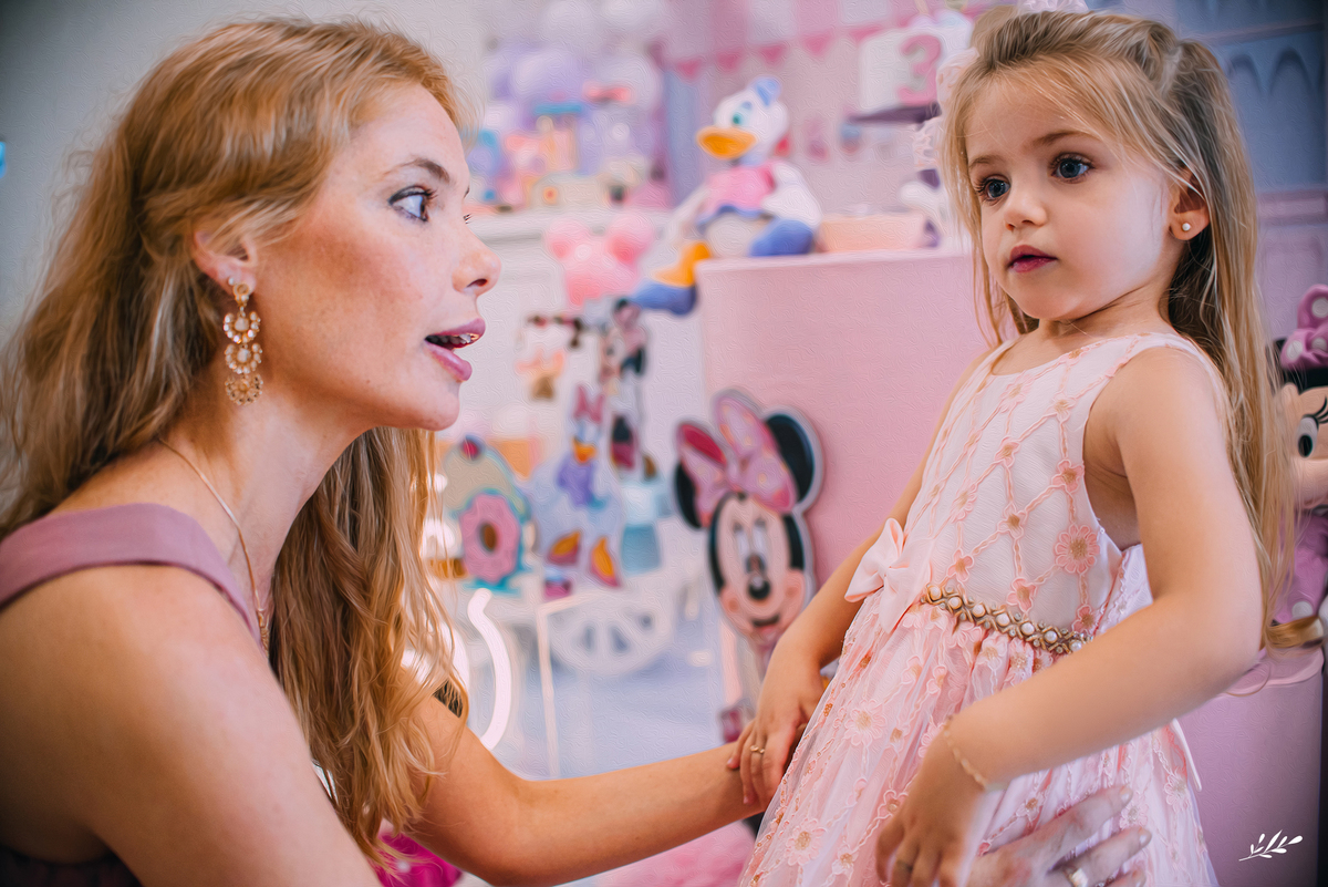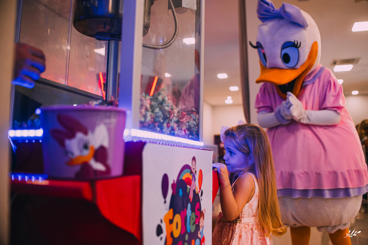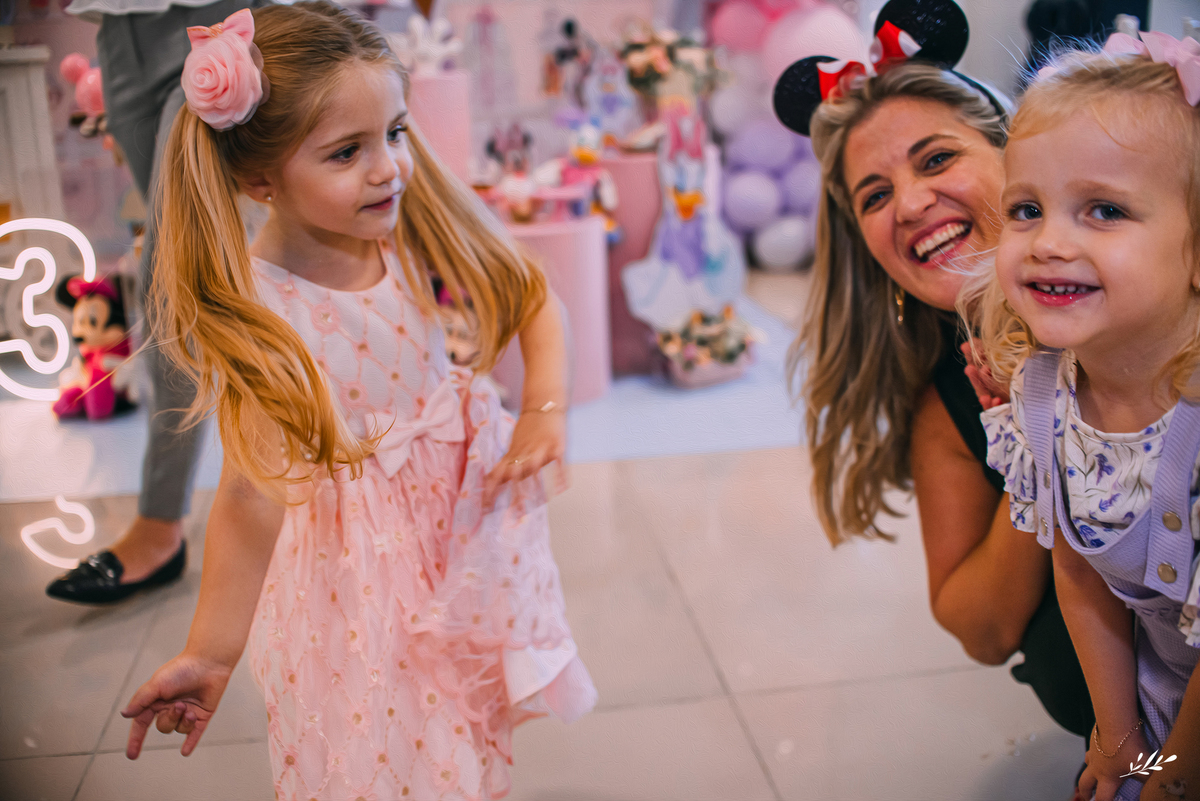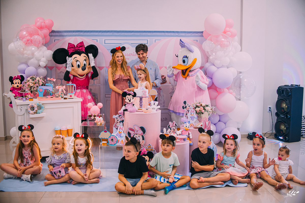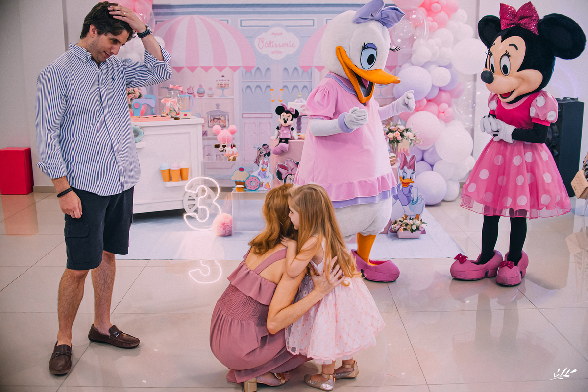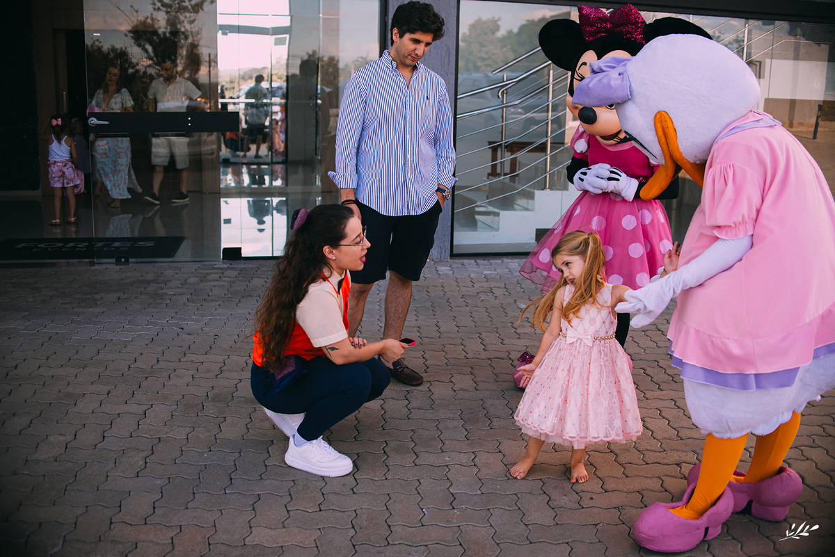 Geeente, a Clara parece que saiu de um conto de fadas, toda delicada e liiinda de viver. O aniversário foi organizado com todo amor por seus pais queridos pra comemorar com a família e os amigos daqui. E a Clarinha estava realizada, seus olhinhos brilhavam, seu corpinho pulava de alegria com a companhia da Minnie e da 'Pata' (Margarida); surpresa preparada com tanto carinho para ela. E ela curtiu cada segundo, explorando esse local tão divertido, brincando sem parar com os amiguinhos que deixaram seu dia ainda mais feliz.