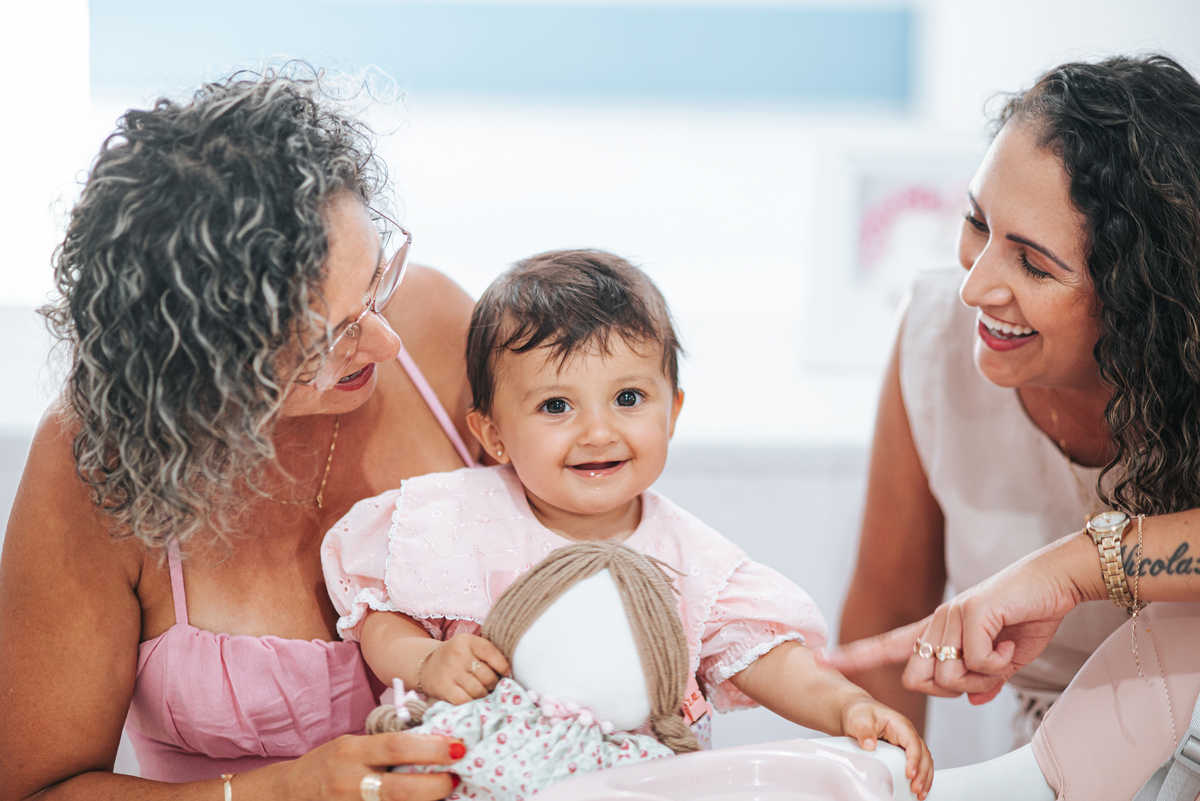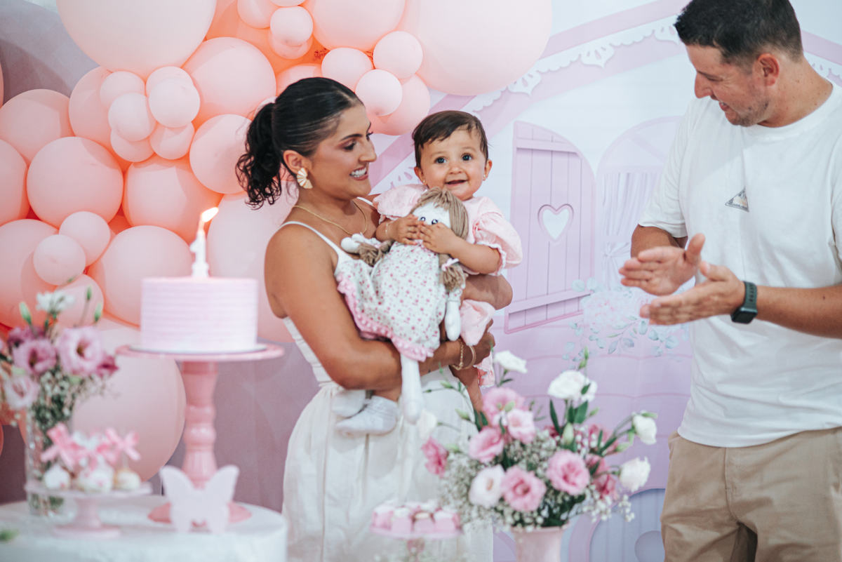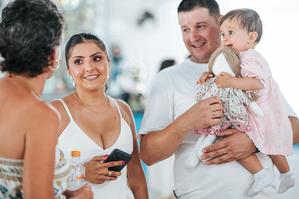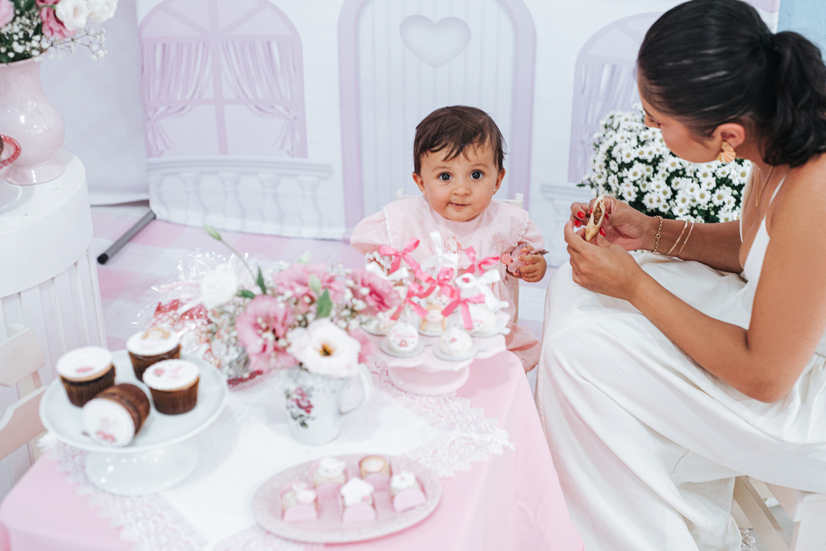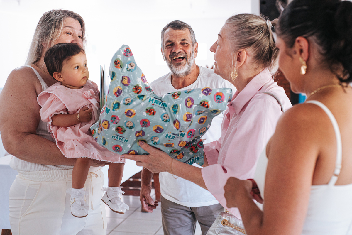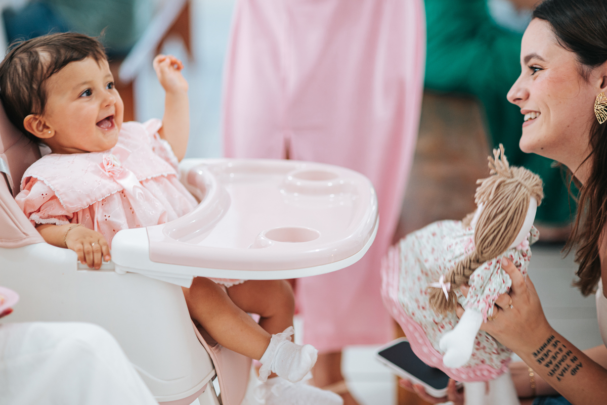A Mari é um encanto de menina! Sorridente, alegre, linda de viver. Estavam todos derretidos por esse docinho. O seu dia foi lindo, cheio de amor, envolto em cores suaves e alegres, como ela. E olha que lindo, ela usou o mesmo vestido que a mamãe Duda usou no seu aniversário de um aninho. Muita emoção, os paizinhos maravilhados com sua Mari, os avós e os dindos então... puro carinho! Foi uma tarde maravilhosa!