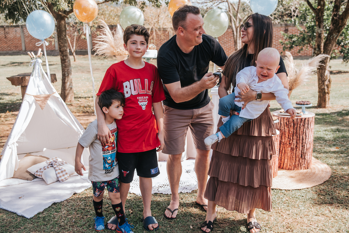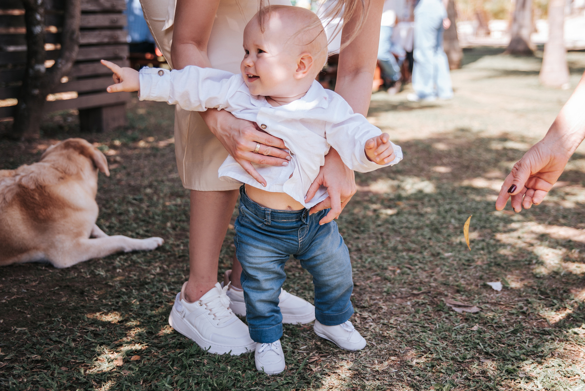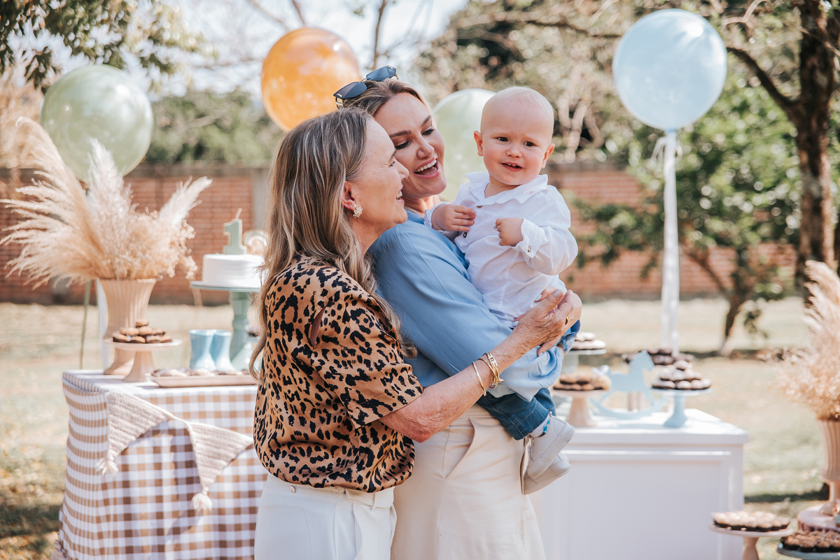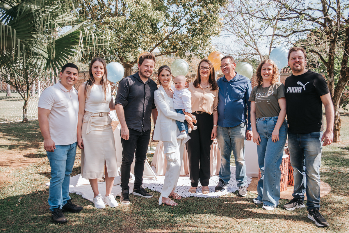 Cada risadinha, cada olhar curioso e cada abraço apertado são motivos de gratidão. Dindos, familiares e amigos vivem de amores por esse pequeno que ilumina tudo ao seu redor.