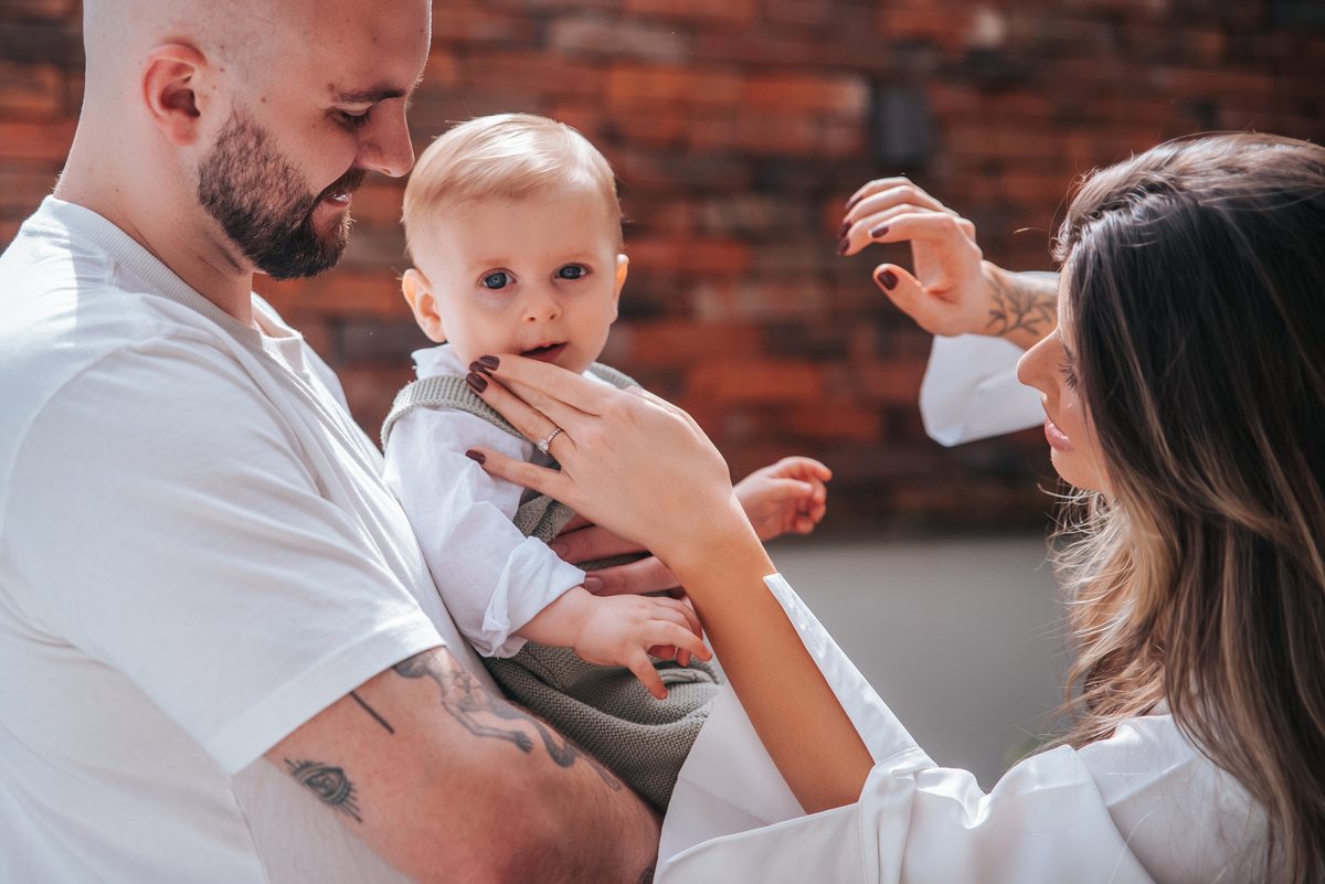 O Luca está cada dia mais encantador — um bebê lindo, sorridente e dono de olhos grandes e azuis como o céu! Durante o ensaio, distribuiu sorrisos generosos e olhares curiosos, conquistando ainda mais os corações da mamãe, do papai e da vovó, todos completamente apaixonados por ele. Um momento cheio de amor, leveza e ternura para guardar pra sempre.
